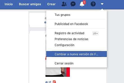 “cambiar a nueva versión de Facebook”.