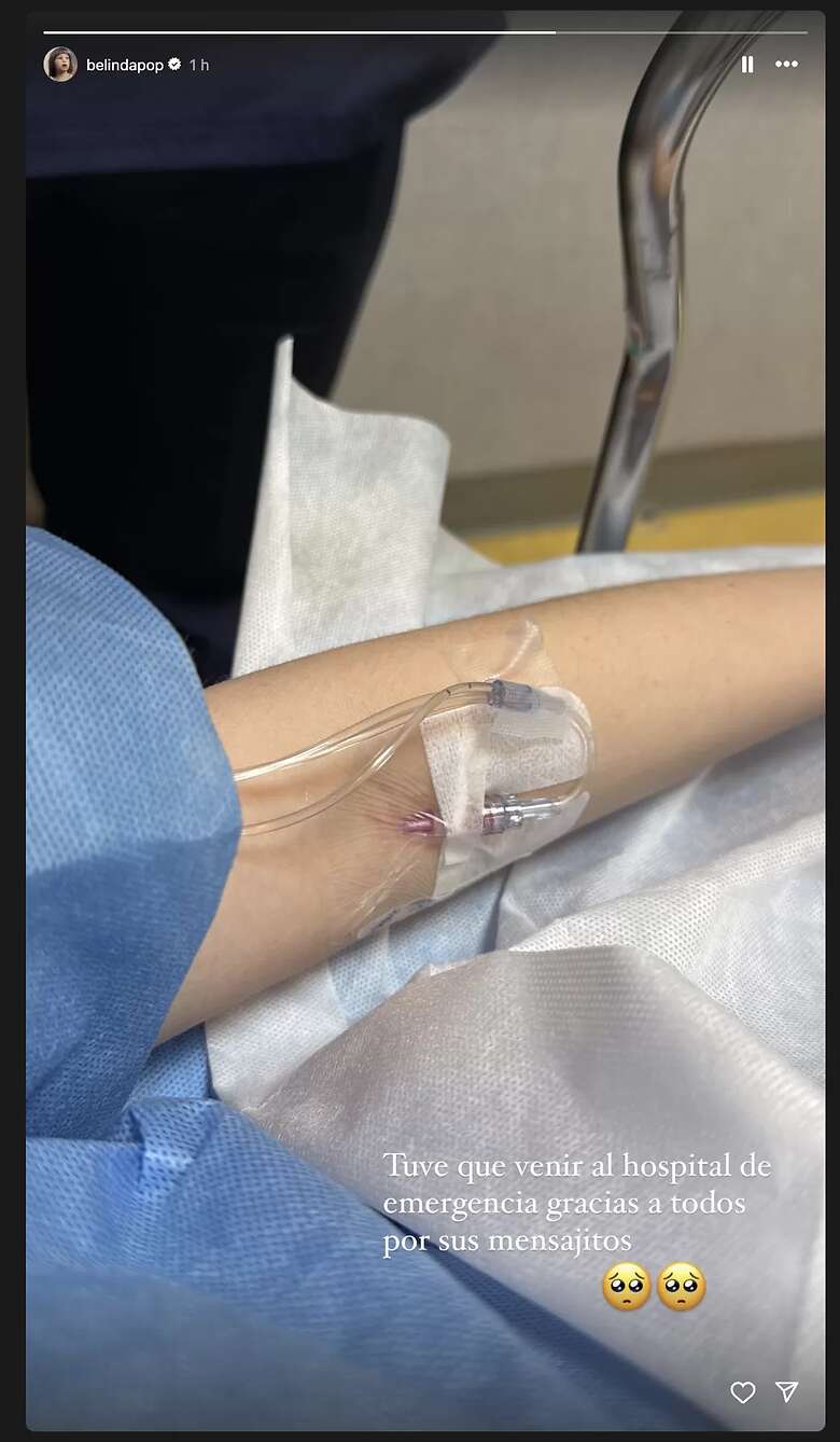 A través de sus historias de Instagram, Belinda compartió que había sido ingresada de emergencia, agradeciendo a sus fans por sus mensajes de apoyo