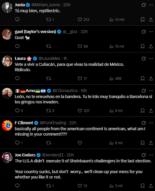 “México es un país soberano. ¿Sabes cuántos estadounidenses viven pacíficamente en México? ¿Sabes quiénes son los reyes de los cárteles de la droga en el mundo? Ustedes. USA", respondió León al tuit de Jim Ferguson, político británico que aseguró que México se encuentra en “la mira” de Estados Unidos, ante amenazas de Donald Trump de iniciar con operaciones militares contra los cárteles de narcotráfico en México.