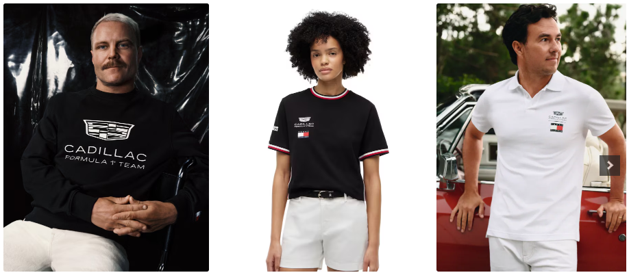 La colección, desarrollada en conjunto por ambas marcas, incluye prendas co-marcadas con los colores y el logotipo del Cadillac F1 Team, así como detalles que reflejan el diseño característico de Tommy Hilfiger.