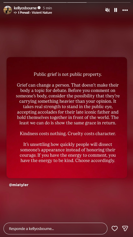 Y agregó: “Nada de esto demuestra fuerza; solo revela una profunda ausencia de compasión y carácter”. Con estas palabras, Osbourne destacó que la crítica destructiva no es un signo de fortaleza, sino de falta de empatía.
