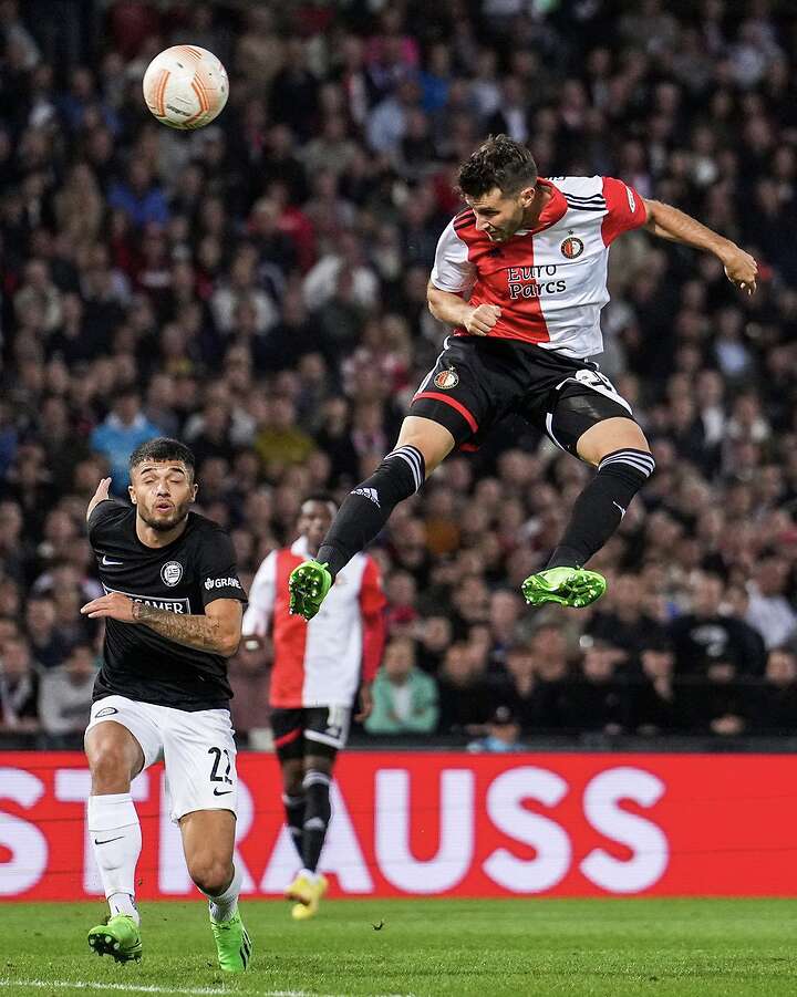 Santiago Giménez como líder de goleo de la UEFA Europa League, después de anotar tres goles en dos partidos siendo suplente en el Feyenoord.