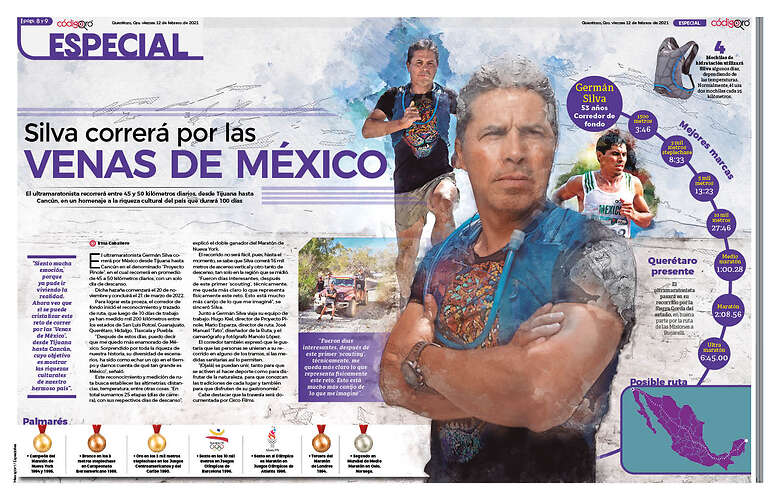 Germán Silva correrá por México desde Tijuana hasta Cancún en el denominado “Proyecto Pinole”, en el cual recorrerá en promedio de 45 a 50 kilómetros diarios, con un solo día de descanso.