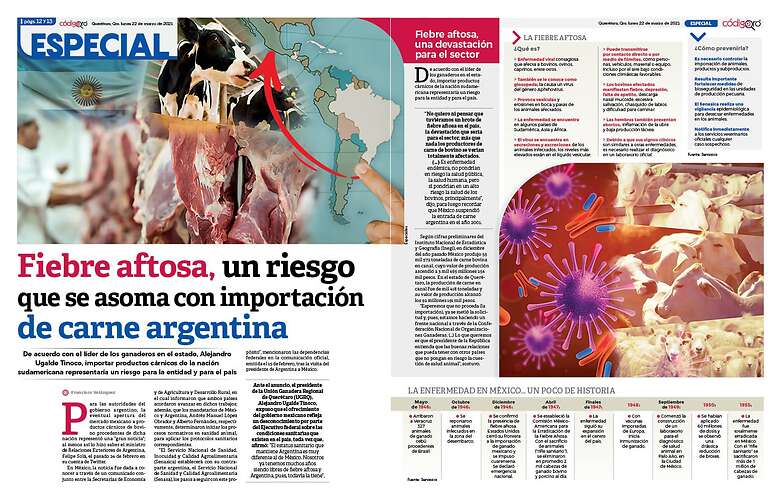 “No quiero ni pensar que tuviéramos un brote de fiebre aftosa en el país, la devastación que sería para el sector, más que nada los productores de carne de bovino se verían totalmente afectados. (…) Es enfermedad endémica, no pondrían en riesgo la salud pública, la salud humana, pero sí pondrían en un alto riesgo la salud de los bovinos, principalmente”, dijo, para luego recordar que México suspendió la entrada de carne argentina en el año 2001.