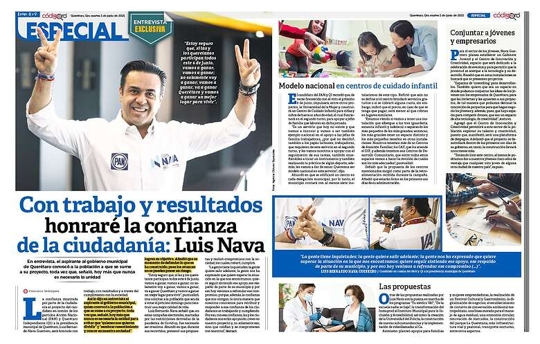 En entrevista, el candidato común del PAN y QI a la presidencia municipal de Querétaro, Luis Bernardo Nava Guerrero, convocó a la población a que se sume a su proyecto, toda vez que, señaló, hoy más que nunca es necesaria la unidad