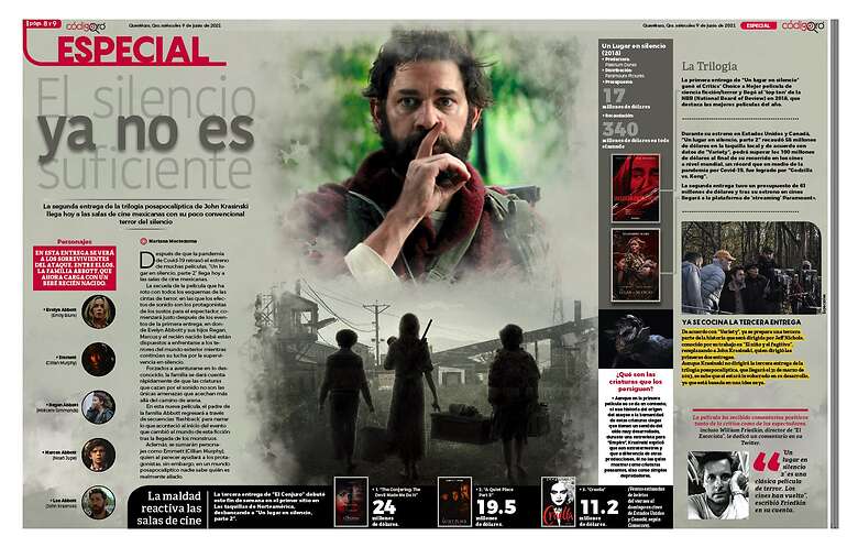 el estreno de muchas películas, “Un lugar en silencio, parte 2” llega hoy a las salas de cine mexicanas.