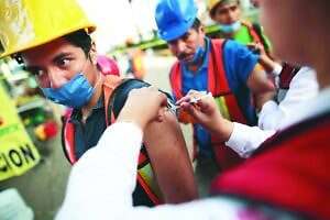 Voluntarios reciben vacunas contra el tétanos en Ciudad de México (México). El tétanos es una enfermedad muy grave que sólo puede prevenirse mediante la vacunación. EFE/Jorge Dan López[/caption]