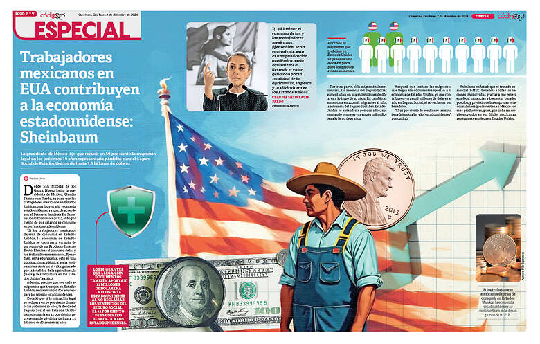 presidenta de México, Claudia Sheinbaum Pardo, expuso que los trabajadores mexicanos en Estados Unidos contribuyen a la economía estadounidense, ya que,