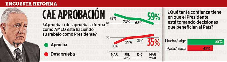 En la encuesta realizada por el diario Reforma, el mandatario mexicano tiene una aprobación de 59 por ciento; mientras que en el sondeo efectuado por