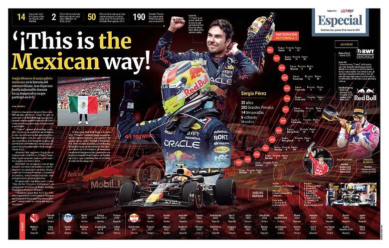 Sergio "Checo" Pérez es el mejor piloto mexicano en la historia del automovilismo, tras dejar una huella imborrable durante las 14 temporadas en que participó en la Fórmula 1