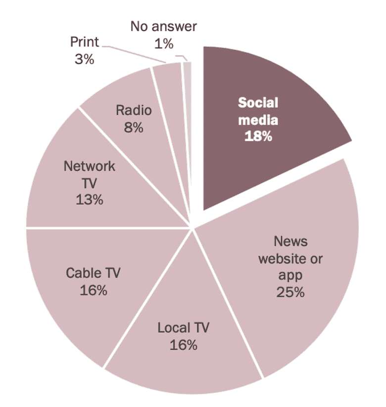 alrededor del 18% de los encuestados obtuvo la mayoría de la información que consumió sobre política y las elecciones a través de las redes sociales.