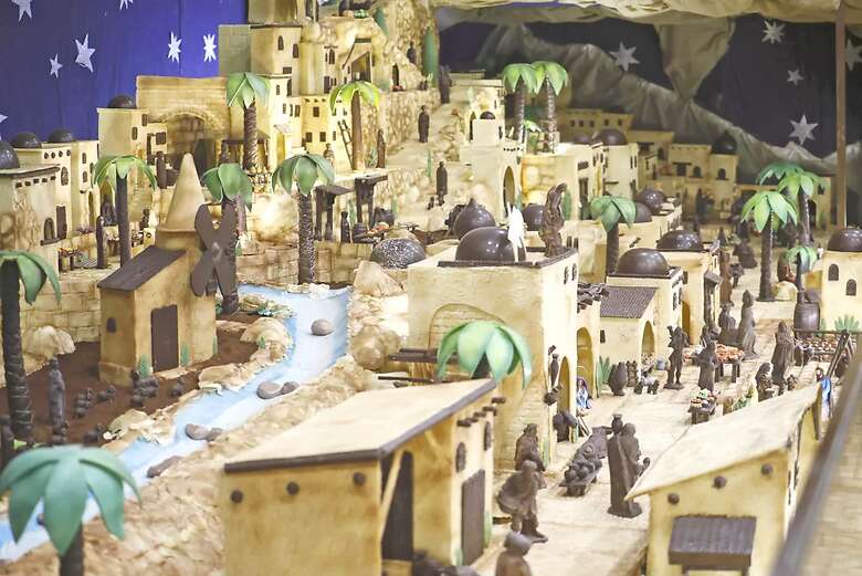 papa Francisco, el gran atractivo es el nacimiento de chocolate en el que trabajan hasta siete personas para moldear