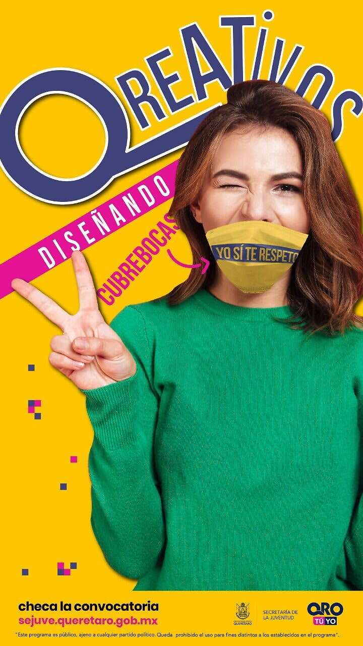 La Secretaría de la Juventud del Estado de Querétaro destacó que la convocatoria "Diseñando cubrebocas creativos" busca contribuir al cumplimiento de las medidas de prevención del COVID-19