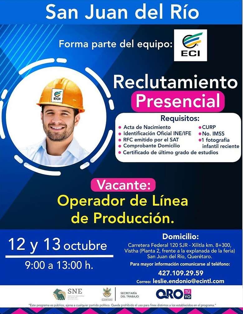 Anuncian reclutamiento presencial para empresa de componentes en San Juan del Río. Foto: Especial[/caption]