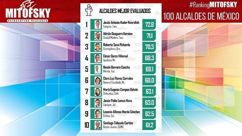 Adrián Oseguera de Ciudad Madero (71.1 por ciento de aprobación), ambos de