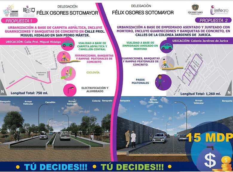 El próximo domingo 18 de octubre, los habitantes de la delegación Félix Osores Sotomayor elegirán la obra que se realizará en las colonias San Pedro Mártir y Jardines de Jurica