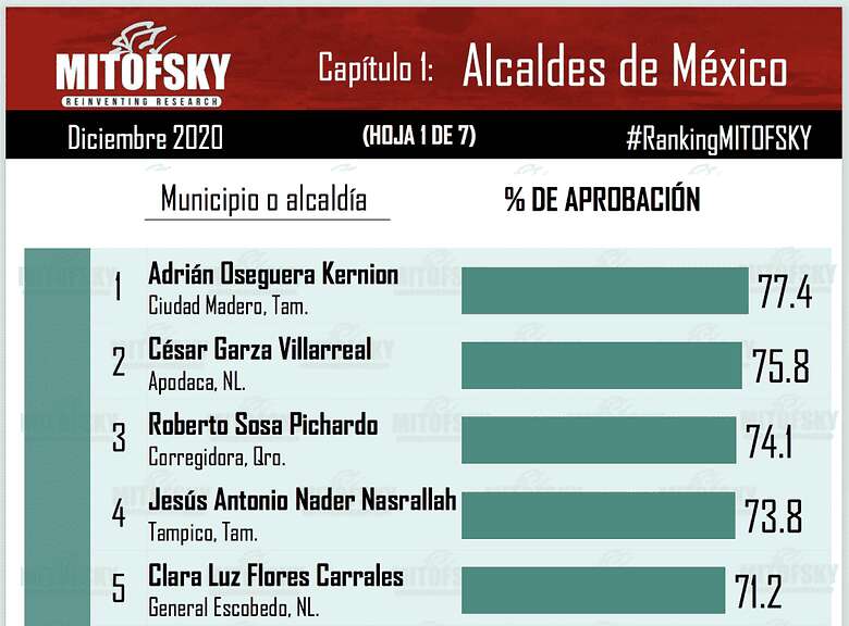 Consulta Mitofsky "100 Alcaldes de México", ubicó al presidente municipal de