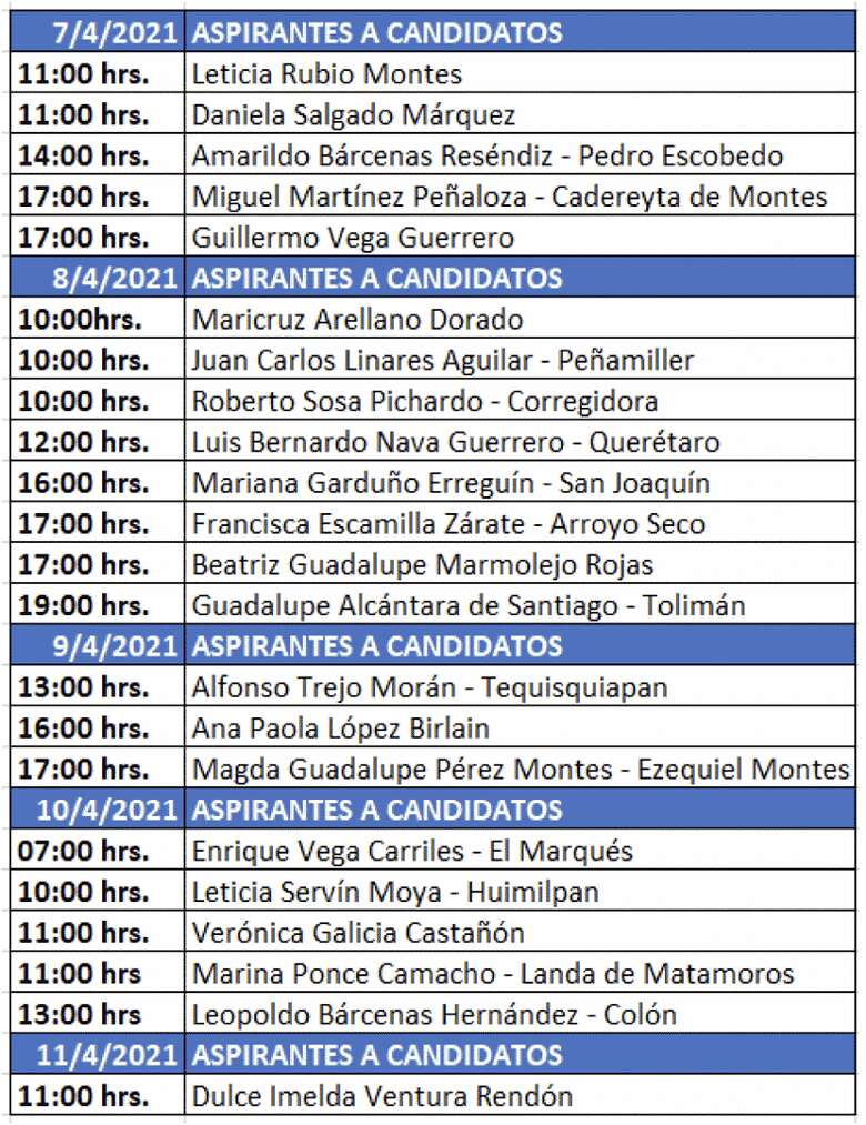 En un comunicado, el PAN Querétaro detalló el listado de los aspirantes que han solicitado formalmente su registro: