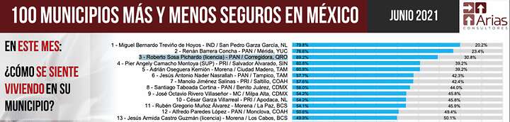 San Pedro Garza (75.6%), quienes ocupan la primera y segunda posición respectivamente, ambos pertenecientes al estado de