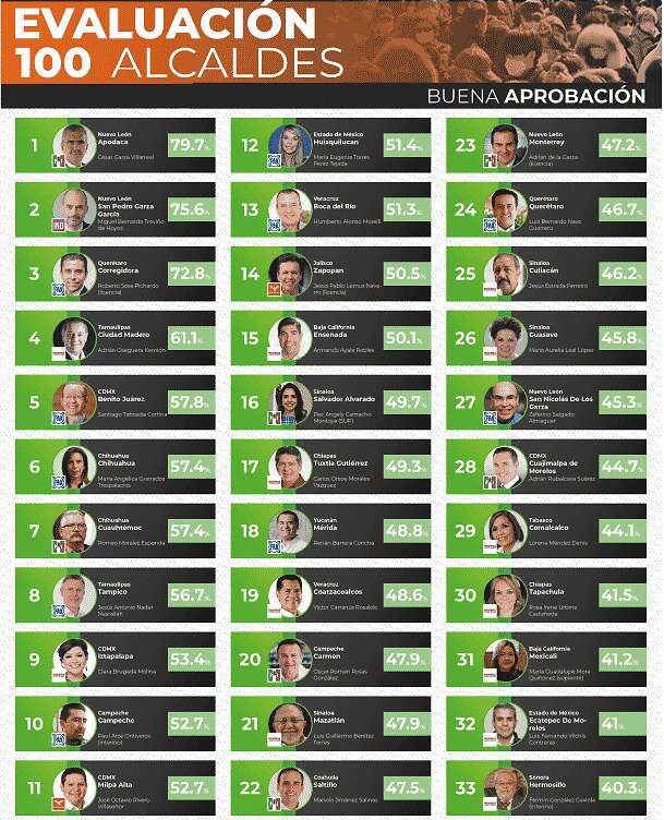 Corregidora ocupa la última posición en la encuesta, con tan solo un 26.3 por ciento de aprobación ante el jefe del Ejecutivo federal.