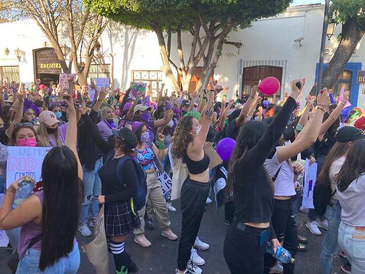 El contingente feminista que se congregó en la plaza del estudiante, frente a la Universidad Autónoma de Querétaro (UAQ), marchó por tecnológico con dirección a la calle Hidalgo, para después continuar por Ezequiel Montes.