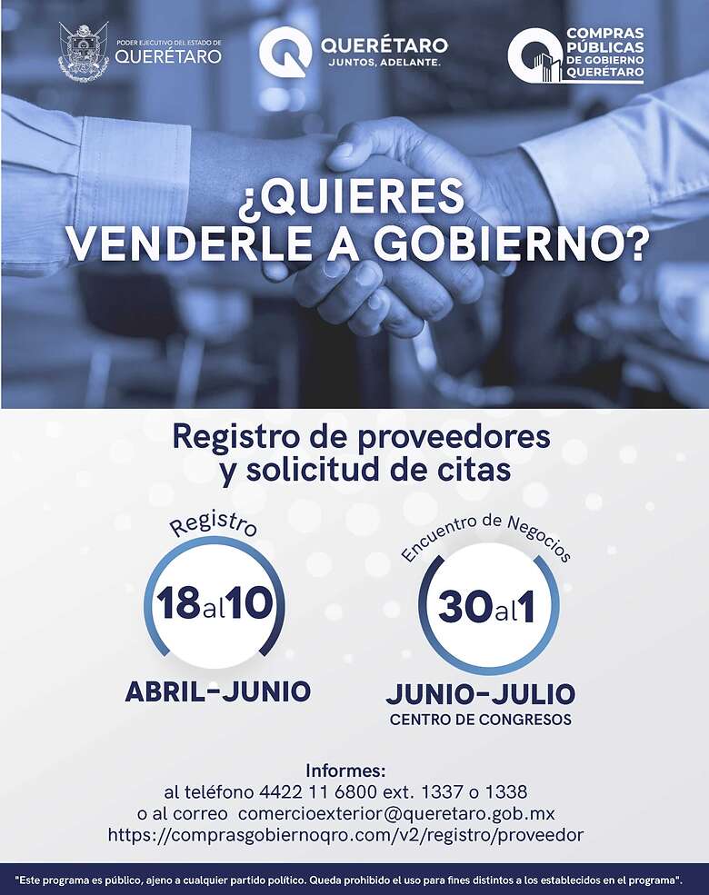 A partir de este lunes 18 de abril se pone a disposición de las Micro, Pequeñas y Medianas Empresas (MiPyMEs) queretanas los requerimientos de compra para que puedan ser proveedores de distintas entidades públicas