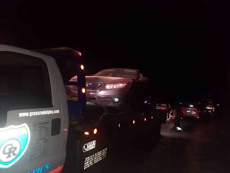 Ranger, blanca; Tida, rojo; Civic, gris; Versa, azul; L200, blanca; Frontier, blanca; Virtus, rojo; Kicks, gris; Kicks, azul; Silverado, negra y motocicleta KTM.
