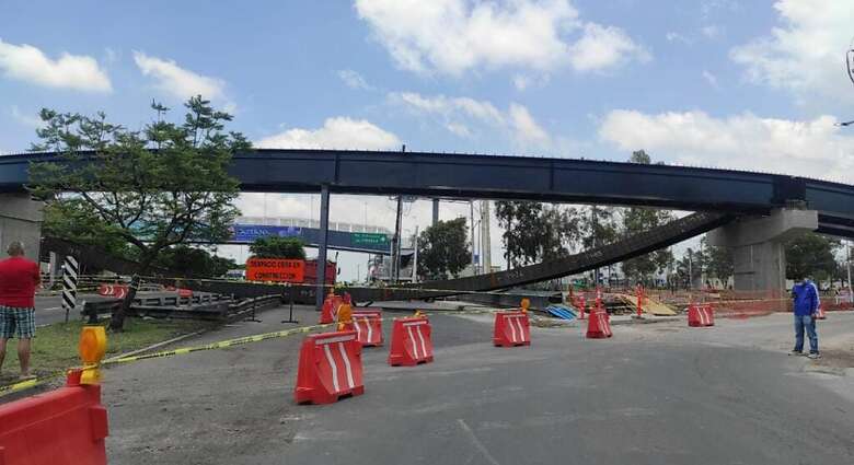 Una trabe de puente en construcción sobre Blvd. Bernardo Quintana -que había sido colocada la madrugada de este domingo- cayó sobre la vialidad provocando el cierre total de la misma