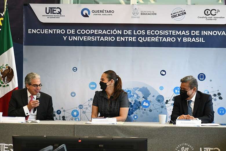 La secretaria de Educación, Martha Elena Soto Obregón, acompañada del embajador de Brasil en México, Fernando Coimbra, encabezó el encuentro de cooperación de los ecosistemas de innovación universitario entre Querétaro y Brasil