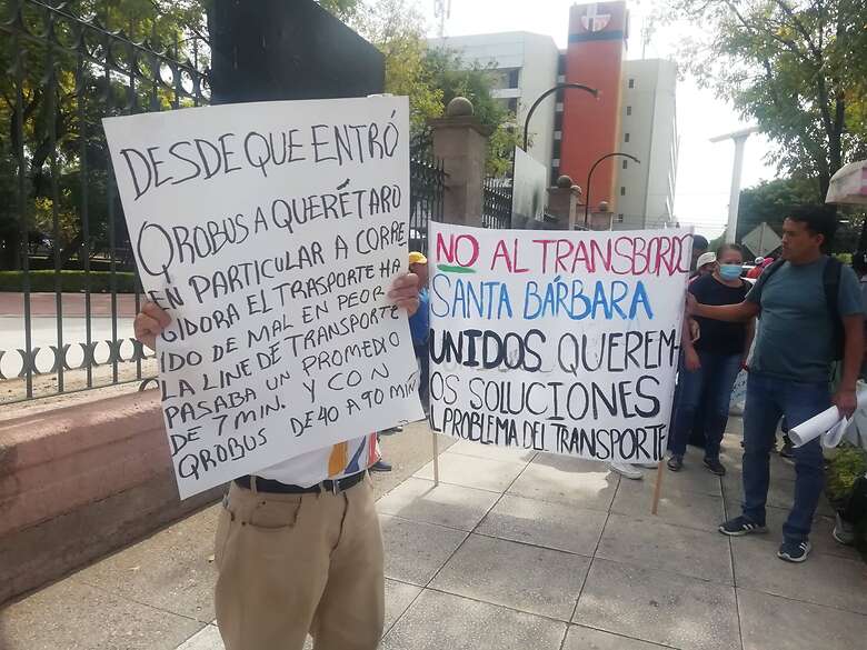 decenas de colonos de Santa Bárbara realizaron una marcha desde el Instituto Queretano del Transporte (IQT) al palacio de Gobierno, en donde protestaron por la eliminación de las rutas 69, 69B y 125.