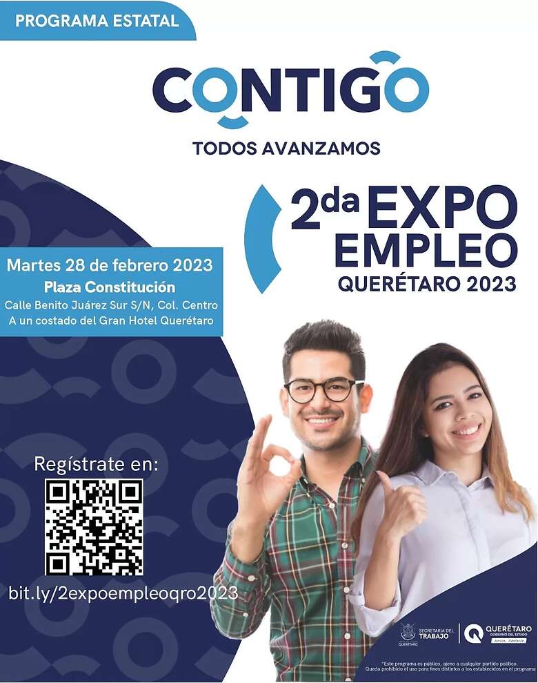 segunda Expo Empleo Querétaro el próximo 28 de febrero en la Plaza de la Constitución de la capital queretana, en donde se promoverán más de mil vacantes en al menos 50 empresas de los sectores industrial, comercial y de servicios.