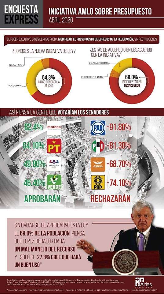 Encuesta de Arias Consultores sobre la iniciativa presidencial para reorientar recursos del presupuesto federal. Foto: Especial[/caption]