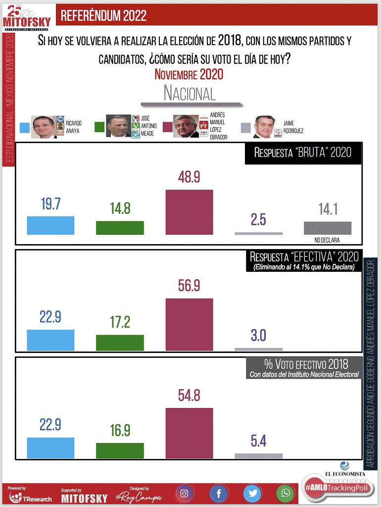 48.9 por ciento de los entrevistados manifestó que votaría de nuevo por el actual presidente de México.