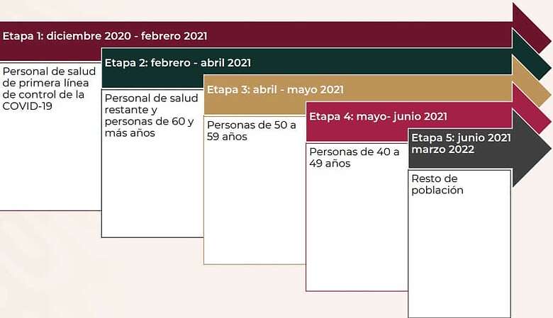 La Política Nacional de Vacunación contra el Covid-19 establece siete grupos prioritarios de vacunación, separando a la población por edad y prioridad; así, el jefe del Ejecutivo recibiría el medicamento hasta el cuarto periodo