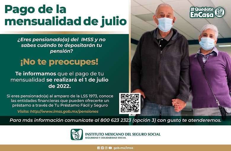 El Instituto Mexicano del Seguro Social (IMSS) informó que, a partir del 1 de julio de 2022, la población pensionada recibirá el pago de la pensión correspondiente a dicho mes