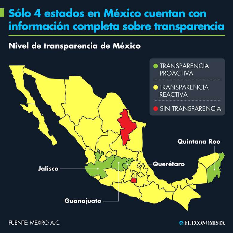 Las únicas entidades federativas que tienen su información completa sobre transparencia son Guanajuato, Querétaro, Quintana Roo y Jalisco, de acuerdo con cifras de la organización