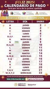 El depósito bancario se efectúa de acuerdo con la letra del primer apellido del derechohabiente, bajo el siguiente calendario: