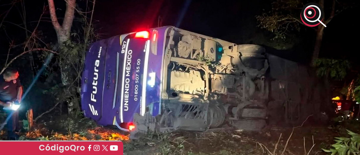 El accidente de un autobús de pasajeros de la empresa Futura dejó cinco personas muertas y más de 20 heridas en la carretera federal México-Tampico, municipio de Tlanchinol, estado de Hidalgo