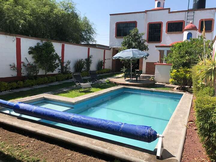 bonita casa colonial, que ofrece alberca climatizada de 9 mts por 4 mts, además de una amplio jardín y área techada.