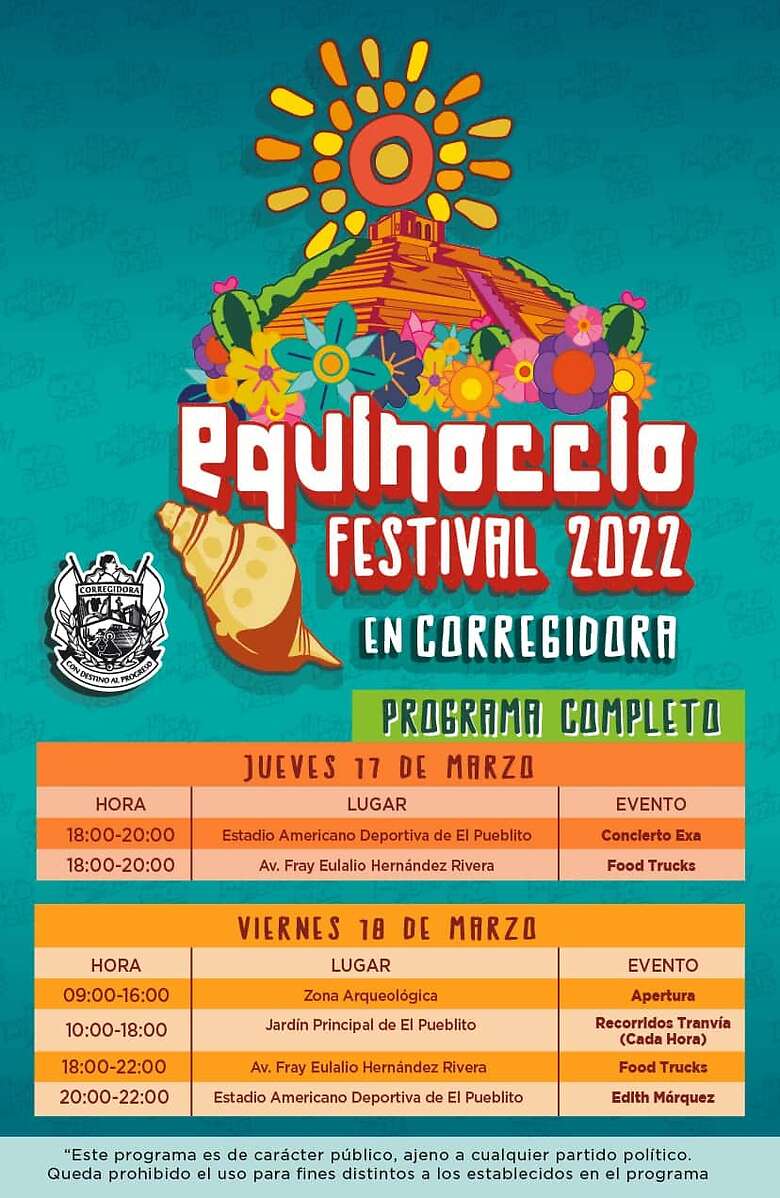 Finalmente, las autoridades de Corregidora informaron que para el “Equinoccio Festival 2022” se contará con la presencia de elementos de Seguridad Pública Municipal de Corregidora y personal de la Dirección Municipal de Protección Civil, a fin de garantizar la tranquilidad y la sana convivencia de los asistentes.