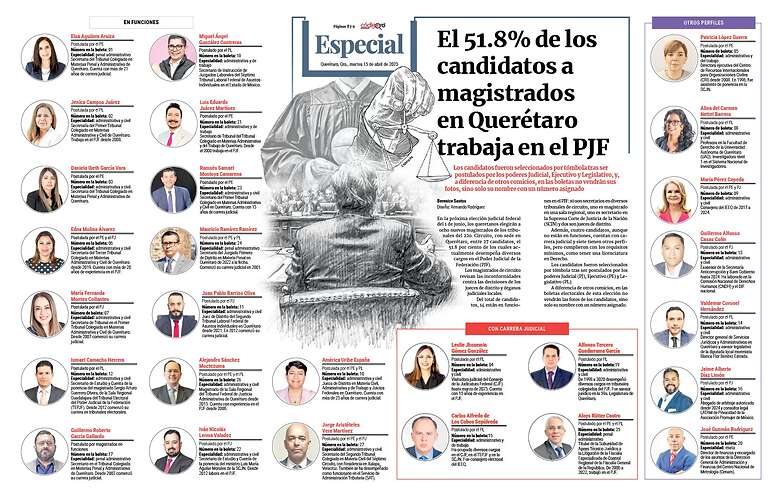 En la próxima elección judicial federal del 1 de junio, los queretanos elegirán a ocho nuevos magistrados de los tribunales del 22o. Circuito, con sede en Querétaro, entre 27 candidatos, el 51.8 por ciento de