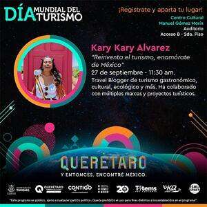 La Secretaría de Turismo del estado de Querétaro (SECTUR), a través de su titular, Adriana Vega Vázquez Mellado, anunció diversas actividades académicas y recreativas, para conmemorar el Día Mundial del Turismo, que se celebra el próximo 27 de septiembre. Al respecto, la funcionaria estatal detalló que en la edición 2023 de estas celebraciones, la Secretaría a su cargo prepara algunas actividades que se llevarán a cabo en el Centro Cultural Manuel Gómez Morín, a partir de las 10:00 horas  y hasta las 19:00 horas. Agregó que se tendrá una serie de conferencias magistrales con temas relacionados al turismo, tales como la ponencia “Travel Tech: Big Bang del Metahumano”, impartida por Herí Mendoza, experto en transformación digital, innovación, tendencias, tecnología y creatividad digital, además de ser fundado de la plataforma “Trip”.  También se impartirá la conferencia, “Reinventa el turismo, enamórate de México”, a cargo de Kary Kary Álvarez, Blogger de viajes que ha colaborado con múltiples marcas y proyectos turísticos. A las 10:00 horas, la Weeding Planner, Karla Avendaño, ofrecerá la conferencia “Querétaro, destino de romance”.   A las  17:30 horas, Fernando Olivera Rocha, exsubsecretario de Turismo Federal y exsecretario de Turismo de Guanajuato y Tamaulipas, ofrecerá la conferencia “Una nueva visión para el turismo y el futuro de Querétaro”. A las 13:00 horas, Óscar Iván Lara, operador y consultor turístico, ofrecerá la ponencia “Diseña experiencias turísticas y transforma vidas”. Además, explicó la secretaria de turismo, se contará con una exposición con lo mejor de las artesanías, la gastronomía y los atractivos turísticos de los Pueblos Mágicos de Querétaro, y experiencias turísticas con operadoras locales. Finalmente, la secretaria informó que las conferencias magistrales, tendrán cupo limitado, por lo que solicitó a los interesados ingresar a este enlace https://docs.google.com/forms/d/e/1FAIpQLSeH20apL02noCpMTB6jEt6b8AtGnOWoCWUtrm0ER5bcSyhVZA/viewform?fbclid=IwAR1V5TQucuqLN_sPJKE52dDmaCx2NPVdqZ2JbH67HFw8_bIXwqSxirzTUNU para registrarse y asegurar su lugar. El Día Mundial del Turismo, fue declarado por la Organización Mundial de Turismo (OMT), a celebrarse los días 27 de septiembre de cada año, con el propósito de concientizar a la comunidad internacional acerca del valor social, cultural, político y económico del turismo; además de la contribución del sector para lograr los objetivos del Desarrollo Sostenible de la Organización de las Naciones Unidas.