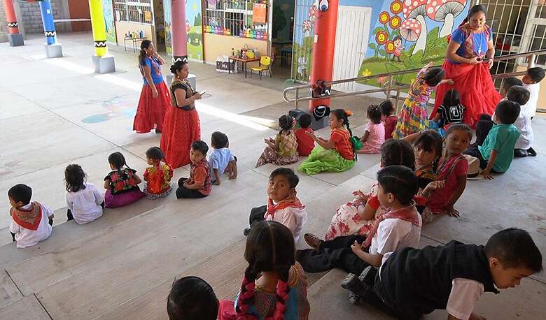 'Kelly Tehuanita' lleva clases de su lengua materna a las maestras de educación preescolar de Tehuantepec, como el jardín de niños Donaji, donde asisten 68 niños y que lleva el nombre de una princesa zapoteca del Oaxaca prehispánico.